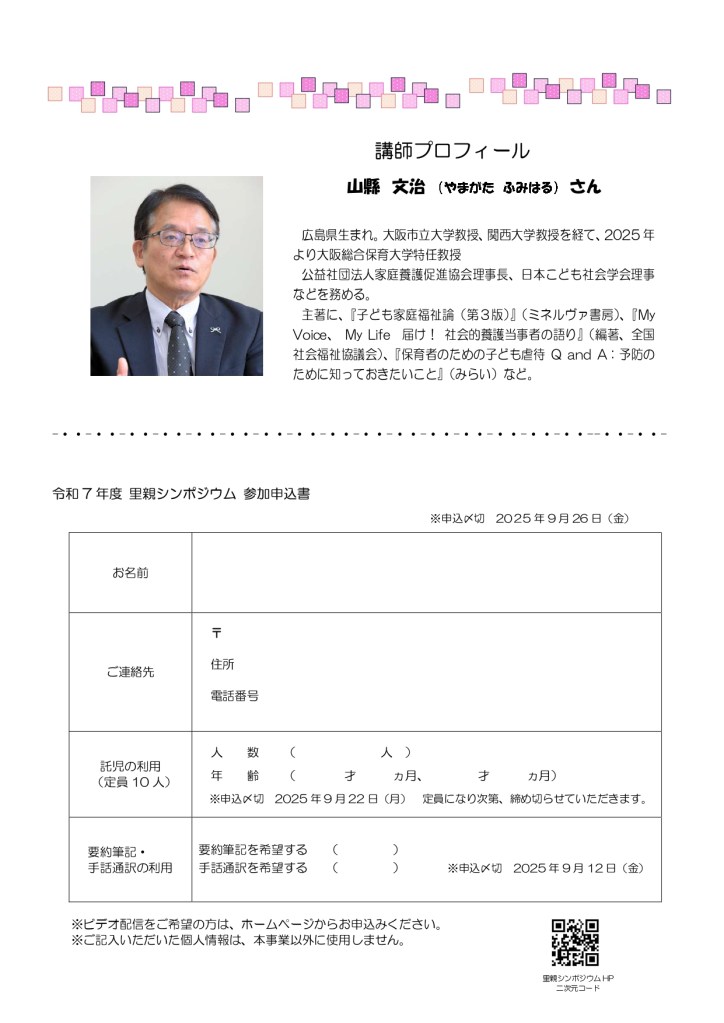 ★「2025年度 里親シンポジウム」 申し込み、お待ちしております。